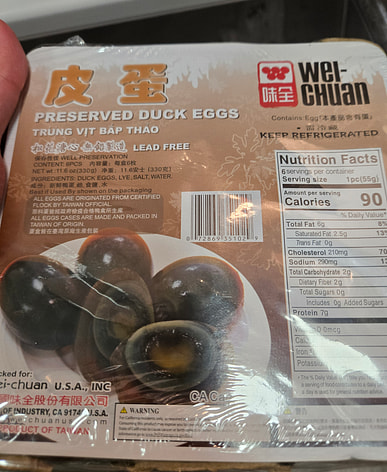 Century eggs from Taiwan are always a higher quality. Not as sulfury.