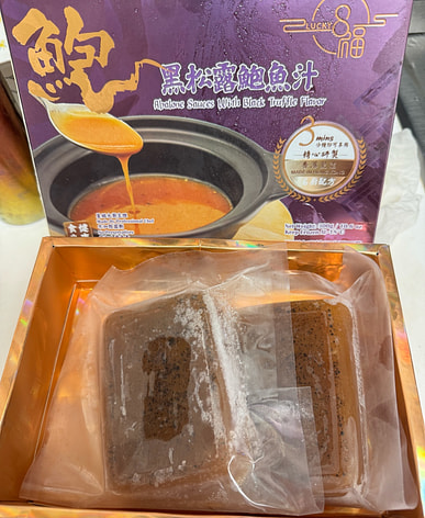 I made Buddha Jumps Over the Wall soup and heated up a packet of abalone sauce. I used the abalone, sea cucumber, and conch slices from the soup to dip in the sauce, and it tasted pretty good.