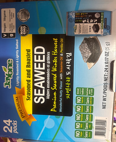 This is my true love, found on Weee. Less salt, healthier, and tastier! I love it rolled up with rice and vegetables, even the rice scraps are a treat!