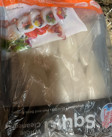 Fresh squid, cleaned and prepared, just defrost and cook