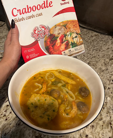 The crab noodle soup was delicious. The noodles were chewy and elastic. However, they needed to be boiled a bit longer than stated on the packaging.