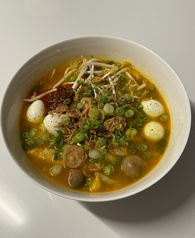 Tastes amazing! I dressed it up with some quail eggs, chili oil, fried scallions, and bean sprouts since I split it into 2 portions