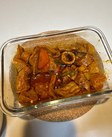I baked it in a convect oven and it was baked really crispy. I was worried because the seasoning was sweet, but it's okay^^ There's a lot of oil ㅎㅎ