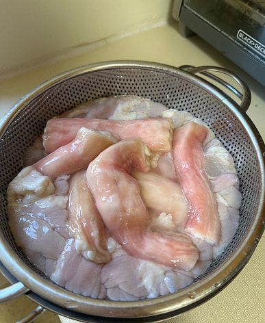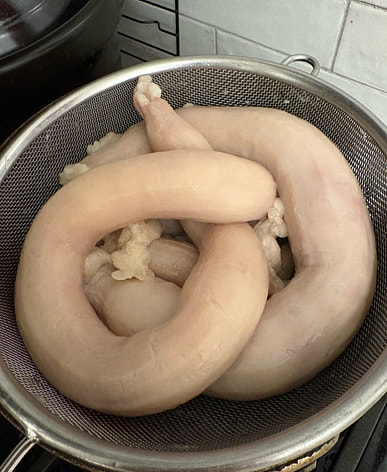 The intestines were full of fat and not fresh, they were dark and discolored. I didn't dare eat them.
