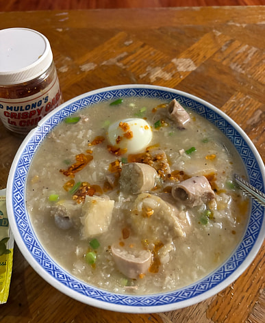 A satisfying and comforting congee made in a rice cooker with tender beef intestine and fragrant Asian spices. Perfect for a hearty meal on a chilly day.