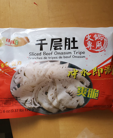 It's cold today so I took out the beef tripe for hot pot. It's chewy but a bit expensive.