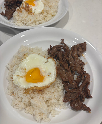 This beef tapa is so good with matching fried egg, kimchi cabbage and steamed rice.