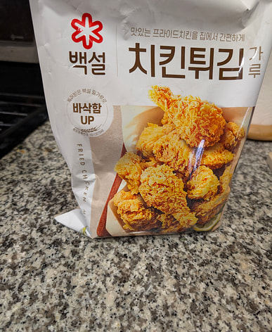 I bought the frying powder on sale, but it's cheaper at the Korean supermarket. It's a shame.
