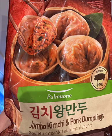 I tried it at a friend's house and it was so delicious that I bought some too! I don't like thick dumpling skins, but these were really thin, which was nice, and they were packed full of filling. I think I'll stick with these kimchi dumplings for a while.