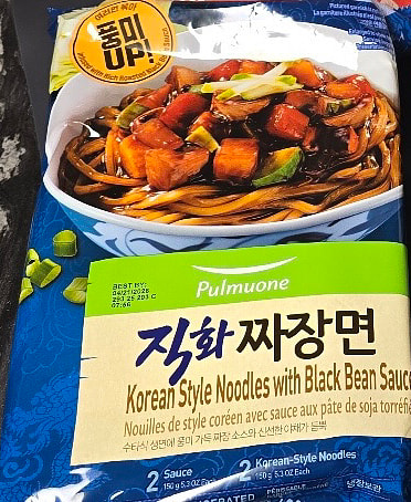 Pulmuone Jjajangmyeon is a bit sweet, but it's delicious if you add red pepper powder!
