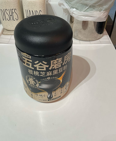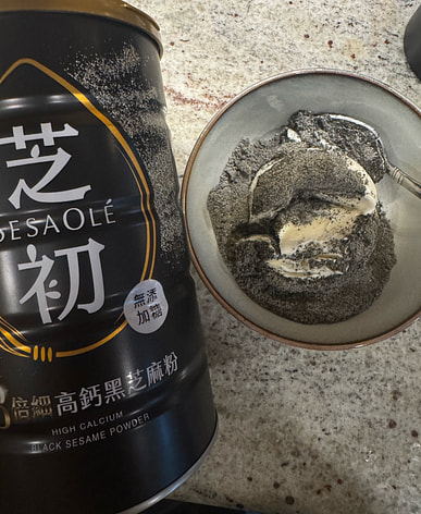 It is not sweet but very fragrant. There is a metal inner lid under the plastic lid to seal it and prevent it from getting damp. Because of the black glutinous rice flour, the hot water needs to be added slowly to prevent it from clumping. I bought it to supplement calcium, so I also added two spoons of black sesame powder (Zhi Chu, also from Taiwan, also sugar-free) to increase flavor and nutrition.