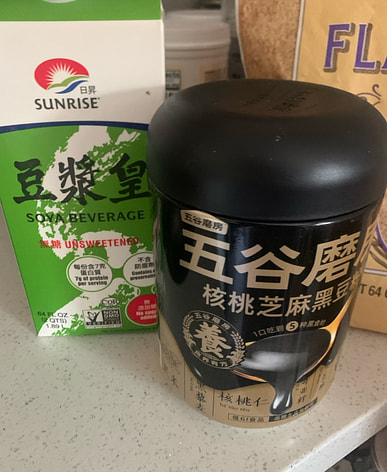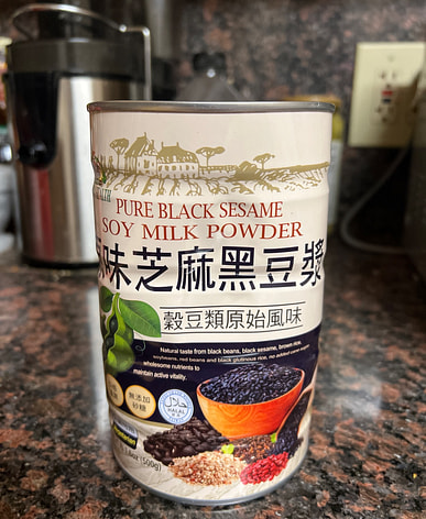 Unsweetened soy milk and five black powder for breakfast or snack: high protein and low carb
