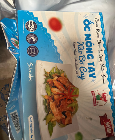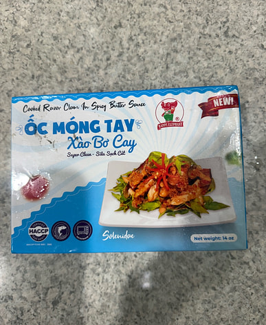 Made in Vietnam. The shells themselves are large and look easy to cook with.
