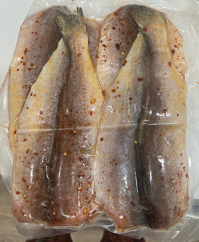 Yellow croaker, big fish with lots of meat. Dried in the sun for 1 day so it's delicious, flavorful, goes well with rice. I will order again if I have the chance.