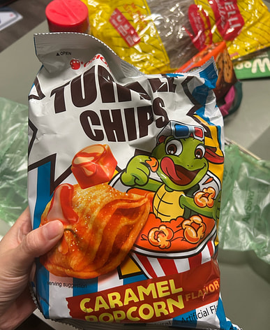it smells so good when you pop open the bag. like fresh kettle caramel popcorn. I was hesitant to buy it as I don't like sweet snacks but glad I got it. its yummy. not too sweet. its perfect and flaky like all other turtle chips. get a bag before its gone