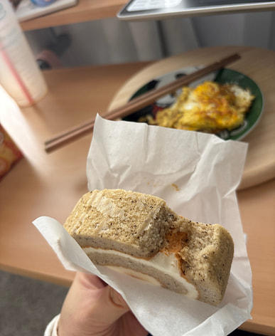 Show off a piece! The cream is quite creamy; it's good to eat just the bread.