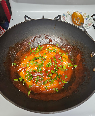 made a special version of buldak carbonara after dieting. the cheese rice cakes are a bit sweet, but go well with this type of menu item. might purchase again! keeps well in the freezer