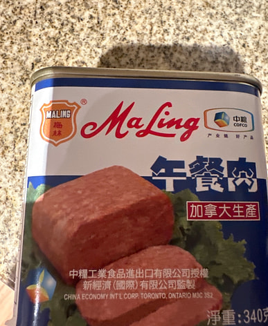 This old-brand spam isn't as salty as the Japanese brand, making it a good choice for kids. It's a mix of pork and chicken. It tastes great cooked in congee.