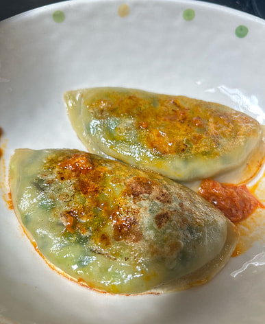 Four chive dumplings, surprisingly delicious.