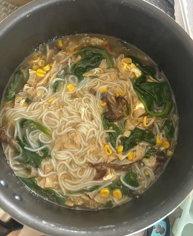 I've stocked up on a lot. If I get hungry at night, I can just cook a packet; it's very convenient.