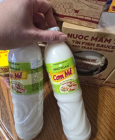 Saw new rice wine so bought to make banh bo.