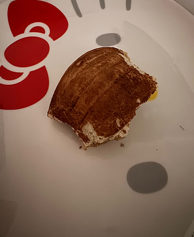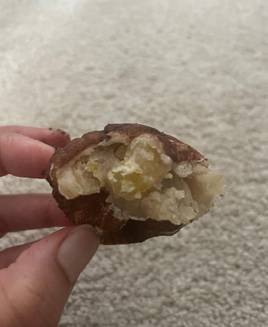 I only remembered to take a picture halfway through eating it. It wasn't too sweet, and the outside was soft and chewy, which was delicious.