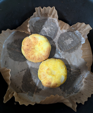 So delicious It only takes about ten minutes in the air fryer. The outside is crispy, and the mochi and purple sweet potato inside are soft and chewy.