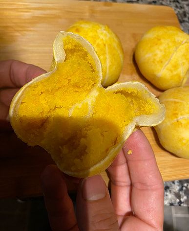 It has some sweet custard and pieces of corn inside, pretty yummy for corn lovers!