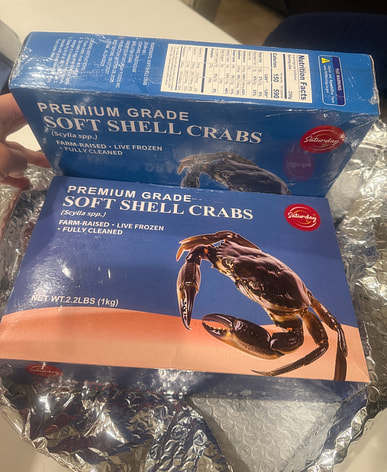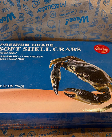 The soft-shell crabs were delicious, but a bit small, only 14 of them.