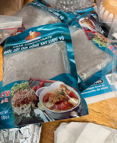 I've bought extra eggs and meat many times, so I don't need to add any extra seasoning to make delicious bun rieu (Vietnamese noodle soup).