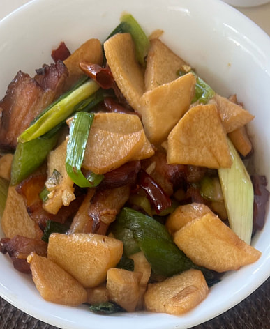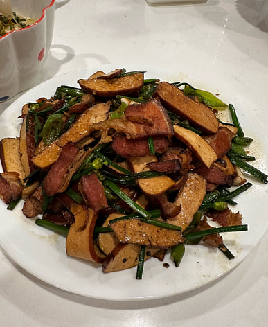 It's delicious. Changsha locals recognize it's not the sweet Cantonese-style bacon; it has a smoky flavor. It's not salty either, but I boiled it before stir-frying it.