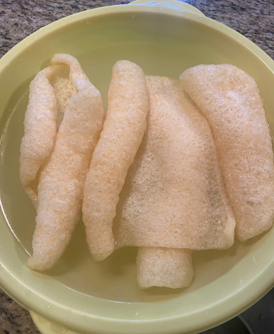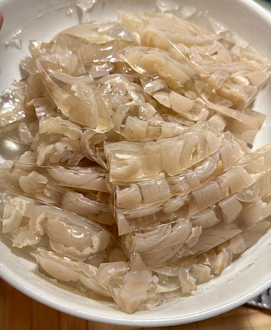 The pig skin was very clean and basically didn't need any further degreasing! My first attempt at making pork skin jelly was a huge success.