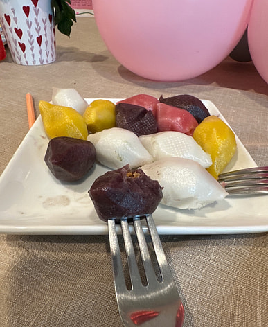 The rice cake is chewy and delicious.