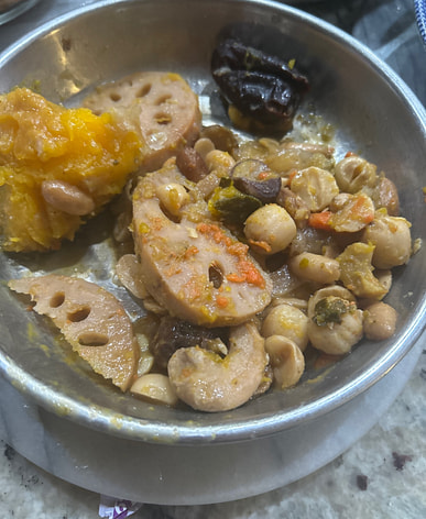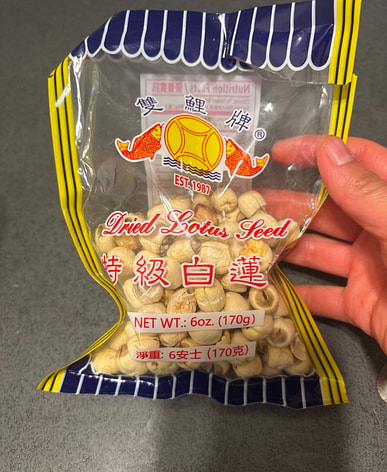 I often make lotus seed, wood ear mushroom, and snow pear soup with red dates and goji berries, but this time it was a vegetarian version: lotus seed, lotus root, peanut, pumpkin, red dates, and carrot soup. It was really delicious!