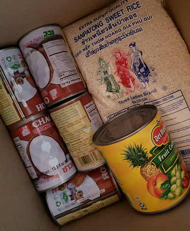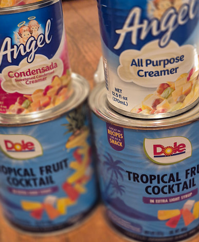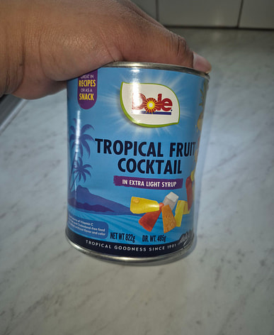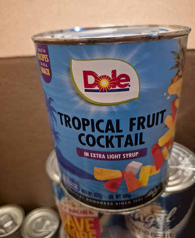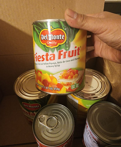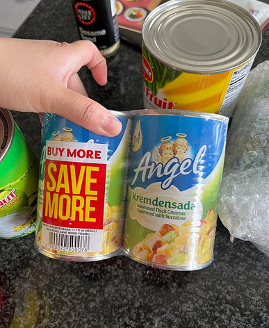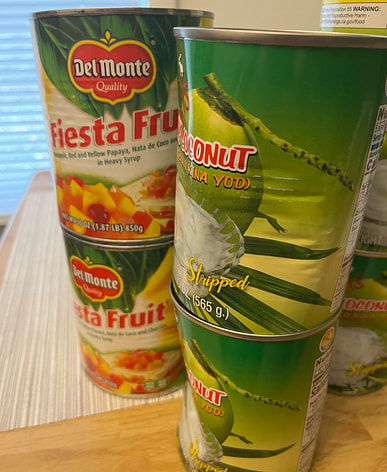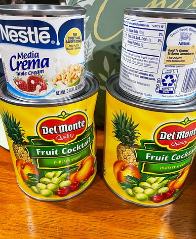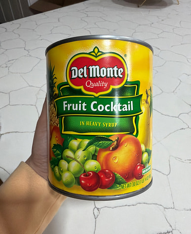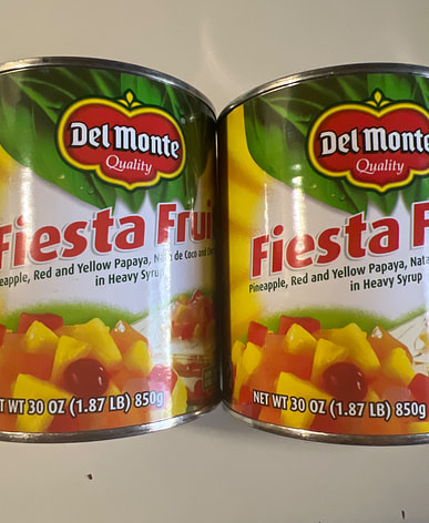 Del Monte fruit cocktail arrived with coconut milk and sweet rice. Made fruit salad with this and kakanin for New Year's Eve.