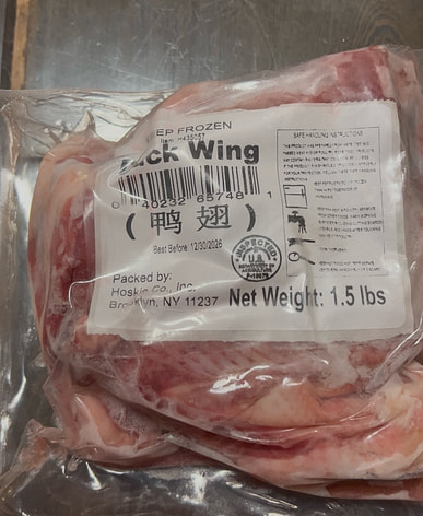 It contains whole duck wings, but not a large quantity because I threw away the wing tips. If you plan to make braised dishes, you'll need two packs to eat.