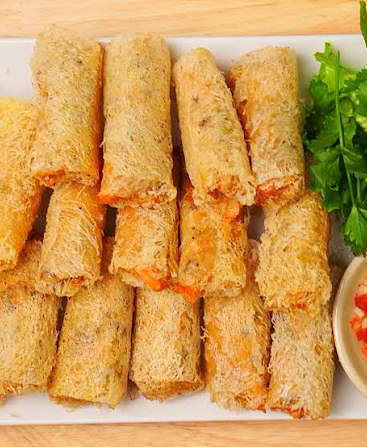 These spring rolls are delicious and flavorful. They're also convenient because you just need to fry them up before eating.