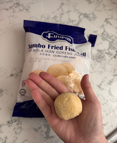 The jumbo fish balls are super tasty. I was too tired to cook dinner so it was easy to throw 2 fish balls with some fried tofu in broth and eat them with leftover rice.