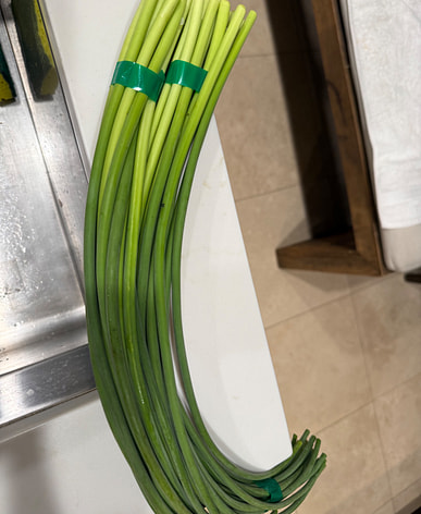 Super fresh garlic scapes you'd be hard pressed to find anywhere else. Tender too! What a treat!
