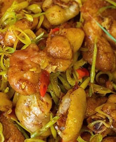 Chicken stewed with lemongrass and chili is delicious.