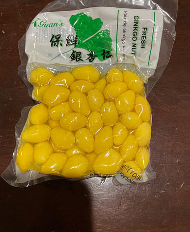 I didn't see any fresh ginkgo nuts, so I bought these frozen ones.