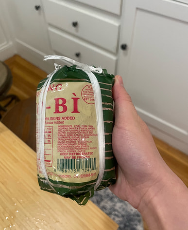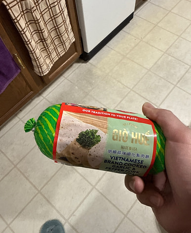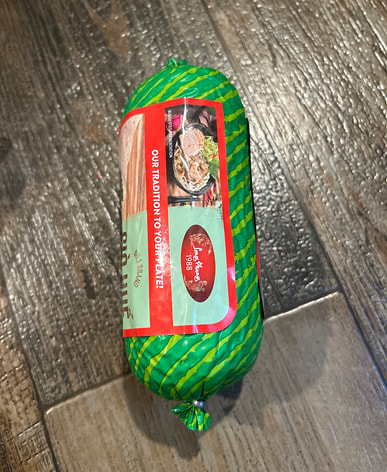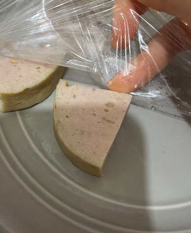 I ate it with bread the other day but forgot to take a picture of the finished product. The sausage was chewy, sweet, and delicious.