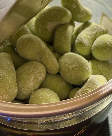The wasabi flavor is quite strong at first, a bit spicy, then it cools down and reveals a cashew aroma—a very unique flavor transformation. I like wasabi, so I like this snack.
