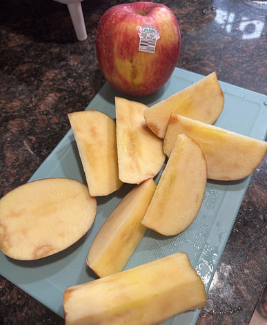Wow, that apple is huge! We'll have to share it.