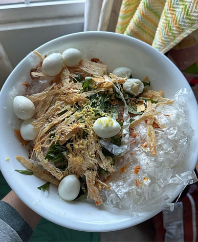 Rice paper salad with some unripe mango and Vietnamese coriander is absolutely amazing!