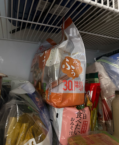 just add water to the packets. great miso soup for a cold day that i dont have to worry about going bad