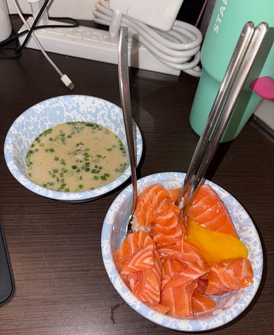 I didn’t have miso paste but this came in to be super helpful. All I needed to do was put a sauce packet + a seaweed packet into a bowl & add hot water for instant soup.