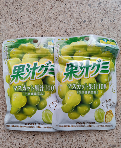 Delicious grape gummies. They're not too sweet. The flavor is good but I think the muscat one is better.