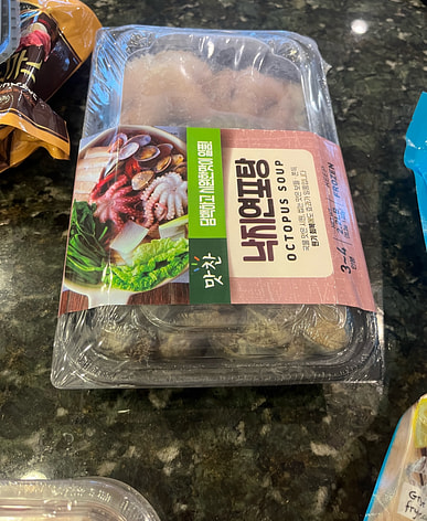 I bought it 5 times, the octopus are big and good, soups base also delicious. I put some Soo je bi which was made flour, It was so so good