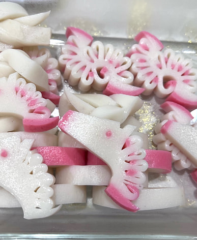 Red and white kamaboko for Osechi to celebrate new year!